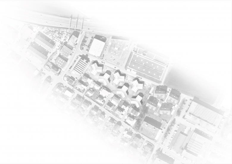 Aus Sicht des Projektverfassers kommt der neuen Bebauung die Aufgabe zu, zwischen diesen unterschiedlichen Bereichen zu vermitteln und ein neues städtebauliches Gelenk zu schaffen, das die unterschiedlichen Bereiche miteinander geschickt verknüpft.