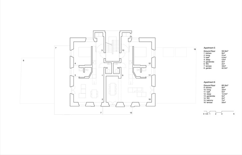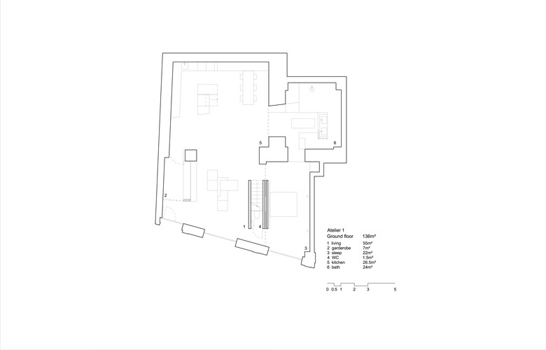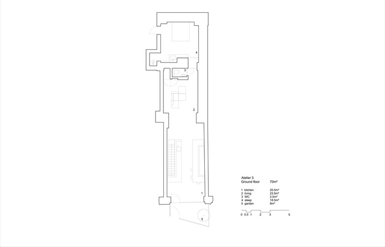 5 small apartments in the 'house' and 4 residential ateliers in the former workshops.