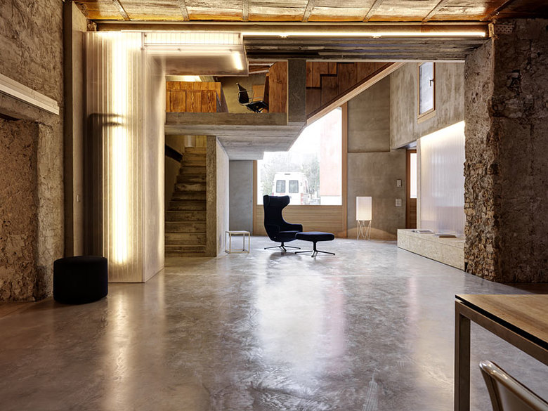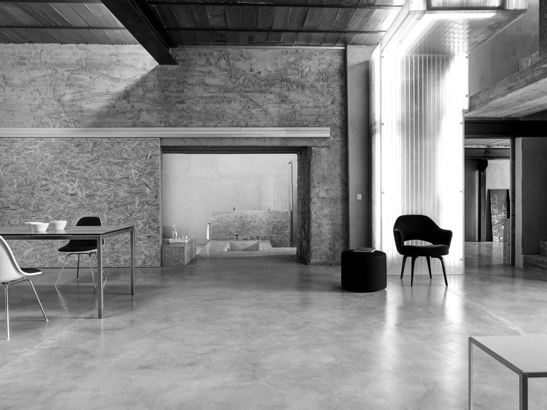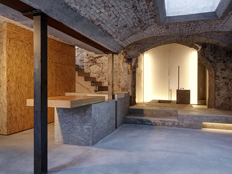 All the elements were put into the raw original state or it was rebuilt raw - a tribute to the material - without hierarchization. There are no inferior materials. Social contamination and connotation disappear. As a result, the space becomes free and authentic - just as people can be.