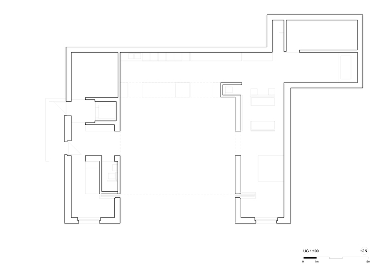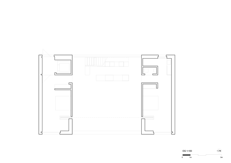 In our understanding of program free architecture, all programs are hidden in the periphery and can be deployed into the room as needed. The Leitmotiv of the mass is articulated by the sculpture of the H and even the interior walls, as they appear 0.5 m thick. These massive stone elements generate a strong force and attraction.