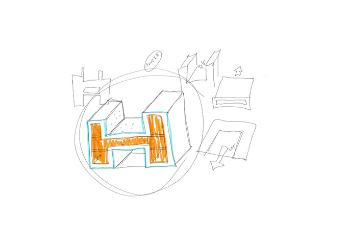 Mass and light, program free and Periphery – The stone H has a two-shell concrete structure. The outer shell of the H is casted with OSB, which generates a rough, almost organ surface. On the inside of the H the surface is smooth concrete.