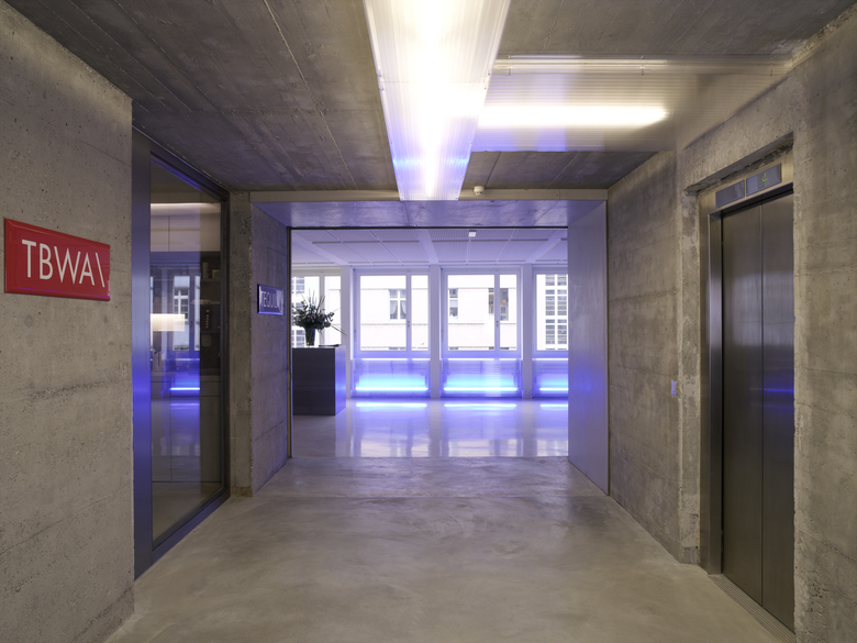 when I was asked to design the new offices for the tbwa switzerland (advertising agency), there were of course many parameters that had to be taken in consideration. the tough one was the tight budget and the spatial context of a rather ordinary office building of the 60’s. the task was high: when I met Markus Pekeler, the ceo of the agency, we had a casual meeting for two hours and he gave me the following inputs: ‘you have to create a cool environment for creative people in an extraordinary environment, no office groove, flexible and free, urban life style, you know, something like the atmosphere in miami beach...