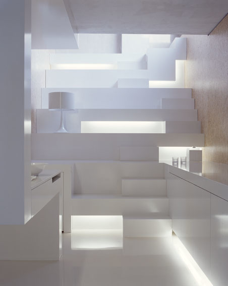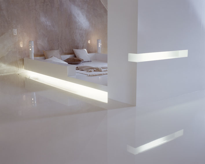 at night fine gaps of lights (indirect), like crevasses light up the glacier and invite to sit or lie on the landscape and enjoy a glass of wine with your loved ones.