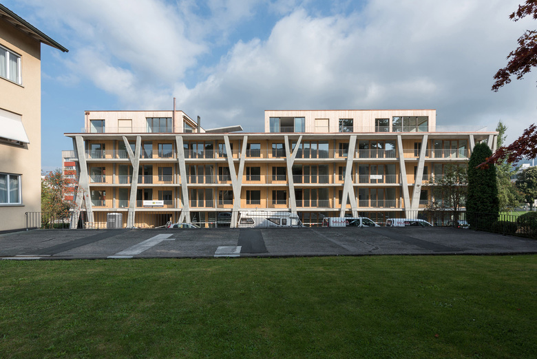 Das Wohnhaus Arborea setzt sich durch sein klares, lebendig strukturiertes Erscheinungsbild von den umliegenden Bauten ab. Prägend sind die zurückgesetzte Fassade mit den vorgelagerten Laubengängen und die markanten, an Bäume erinnernde Trägerelemente. Das Gebäude besticht durch die ökonomische, Ressourcen schonende Holzbauweise. Private und halbprivate Aussenräume schaffen eine hohe Wohnqualität. Arborea überzeugt auch energetisch. Das Gebäude verfügt über eine hervorragend gedämmte Gebäudehülle. Die Gestaltung und Materialisierung der Fassade unterstützen die passive Nutzung von Solarenergie. Aktive solare Wärmeerzeugung versorgt Arborea mit der benötigten Restenergie.
