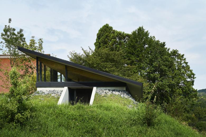Over time, the vegetation on the hill will grow and gradually envelop the base of the building in greenery. The architecture will come to settle into the land, forming a scene as if a large roof had been gently placed upon the hill itself.