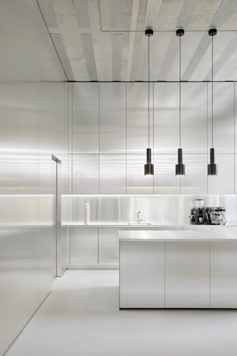 Reduced and timeless in nature, the BESTSECRET brand aesthetic sets the stage for featuring upscale fashion brands in the digital space. The interior design conceived for the new headquarters toys with this idea to transform it into a tangible space using carefully selected colors, materials, and objects. A warm gray shade on the walls works in concert with exposed concrete ceilings and light gray seamless floors to create a neutral backdrop that makes the building the physical equivalent of the digital brand identity. Reflective and mirrored surfaces expand the space visually, while generously applied textile materials establish a reference to the world of fashion.