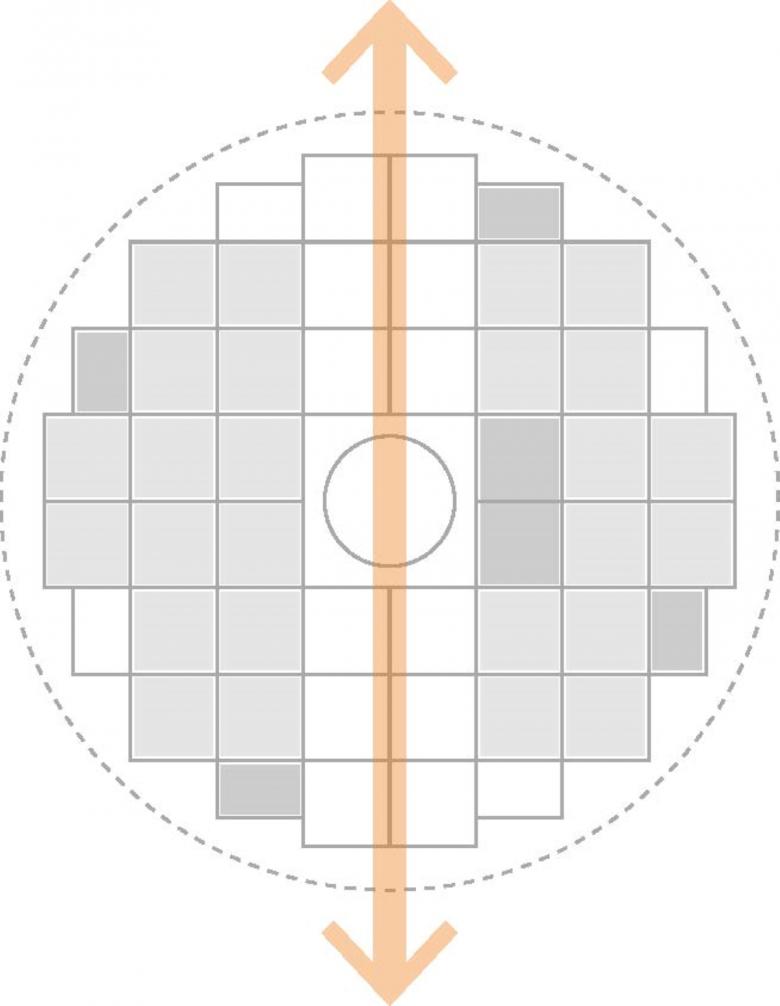 Its circular shape makes Brainergy Hub omnidirectional and links it to all neighboring buildings. Inside this circle, modular units form a pixelated cloud, which is enclosed by three rings of balconies on the upper floors. This structure allows for easy subdivision and a playful arrangement of interior and exterior spaces. The highly rational grid is accentuated by a large central atrium and four smaller courtyards that vary from double height to triple height, providing fresh air and daylight to employees throughout the building. The façade integrates innovative ‘breathing’ ventilation units that ensure high indoor air quality, heat recovery, and improved comfort.