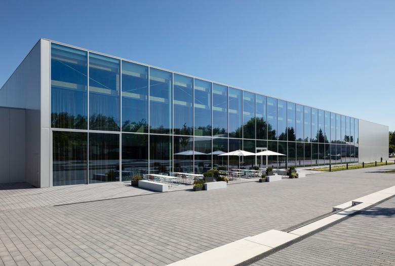 The design is characterised by a pleasant working atmosphere and homogeneous workplace quality. Additional levels have been established in the hall along the length of the transparent façade and are connected to each other by a gallery. They are used for a bistro, office space as well as for research and development.