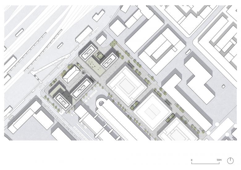 The exciting ensemble of old and new employs the design idea of an “urban village” to transform the area into an innovative place of new working and living in the eastern part of Munich.