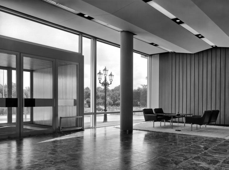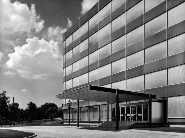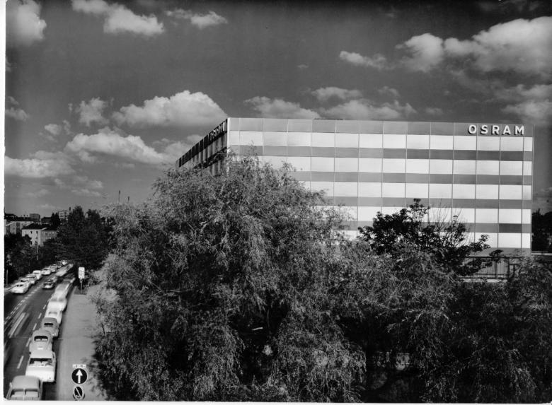 Walter Henn completed the administration building, the research and development centre and the power facilities block for the light bulb manufacturer Osram in 1965. The ensemble stands on Candidstraße near the Isar water meadows and is the global corporate headquarters.