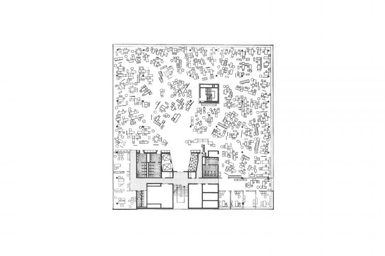 As is evident in particular from its appearance, the six-storey administration building is based on a square plan layout, which is inspired in terms of functionality and aesthetic by international modern architecture. The standalone steel-framed structure is designed for open-plan offices so that new layouts can be introduced quickly if necessary to adapt to different use, improve communications or speed up the flow of information. Therefore the above-ground storeys contain open-plan offices capable of accommodating up to 850 employees in freely configurable working landscapes. The necessary social and ancillary rooms as well as the vertical circulation routes of the building are located in a reinforced concrete core. The ground floor is reserved for other functions; it houses a canteen and a large reception hall as well as special offices. The main entrance on the south side is recognisable to the outside world by a long cantilevering steel canopy. The external appearance of the fully air-conditioned steel skeletal-framed building is defined by the suspended light-metal facade with the balustrade panels and the fixed double glazing running in bands along the building and accentuated by vertical, silver-grey anodised glazing bars. White light-metal external lamellae provide protection against solar radiation. As befitting the corporate activities of Osram, the building looks like a transparent silvery glistening cube, which emits light from within during the evening hours.
