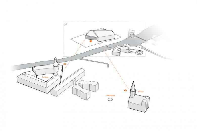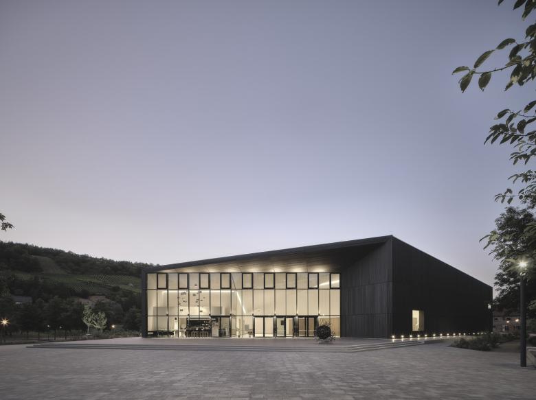 Located in the northeastern part of the State of Baden-Württemberg, the town of Weikersheim is known throughout Germany as a prime music venue and home to the world’s largest musical youth organization, Jeunesses Musicales Germany, and the Weikersheim Castle Music Academy. Prior to the inauguration of the new building, only the old town hall had been available as a large concert venue. Surrounded by picturesque vineyards, the TauberPhilharmonie building sitting on the western bank of the Tauber River provides a new cultural center and event space. Overlooking the historic center of Weikersheim, it communicates with the magnificent renaissance castle and the church of St. George.