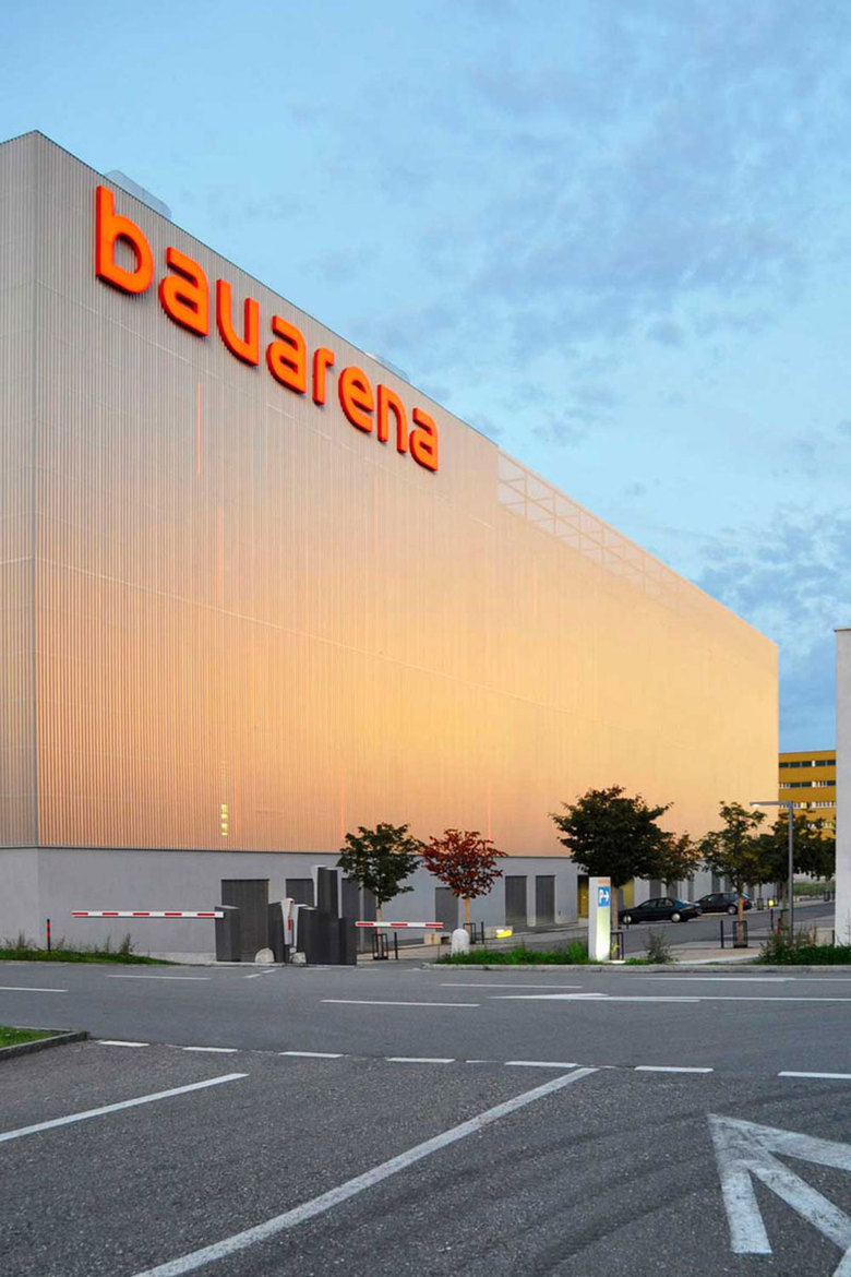 Die BAUARENA ist ein 6-geschossiger Bau und besteht aus einem Unter-, einem Erd-,4 Obergeschosse sowie ein Attikageschoss.