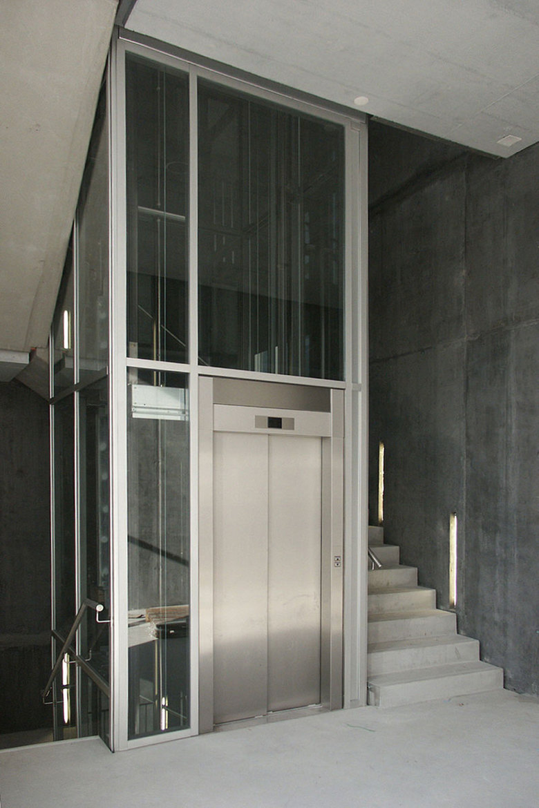 Leichtigkeit und Eleganz, in Verbindung mit den massiven und grob behauenen Vertikalerschliessungen bilden eine Verbindung zwischen Himmel und Erde. Die Leichtigkeit des Seins in Harmonie zum Standhaften, ist die Aussage des Baukörpers. Die klaren und schnörkellosen Vordachzonen gliedern die Horizontale und die Geschossigkeit.