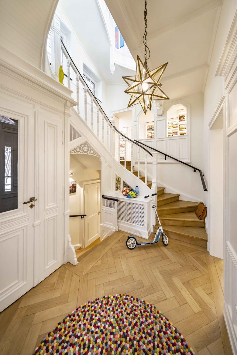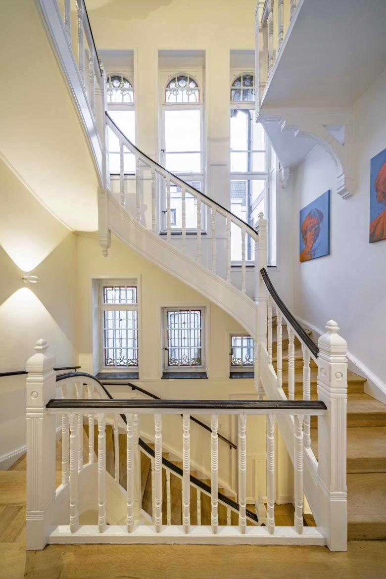 The historic city villa from 1899 was renovated by Hollin+Radoske in accordance with the requirements of a listed building and developed into a coherent overall concept with contemporary interior design as a contrast to the existing building.