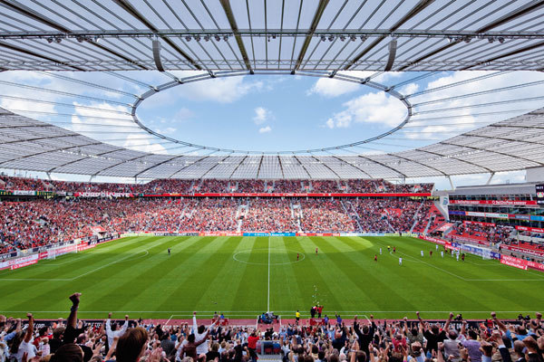 In the course of its modernization, this “pilgrimage site” was prepared to host more than 30,000 soccer fans. This was made possible by the augmentation of the bleachers through the addition of another upper tier. Along with a stadium roof a new four-story west building was erected. In the basement of this west building a new team area was constructed with state-of-the-art infrastructure. The new stadium has VIP, restaurant, and press areas as well as additional event spaces.