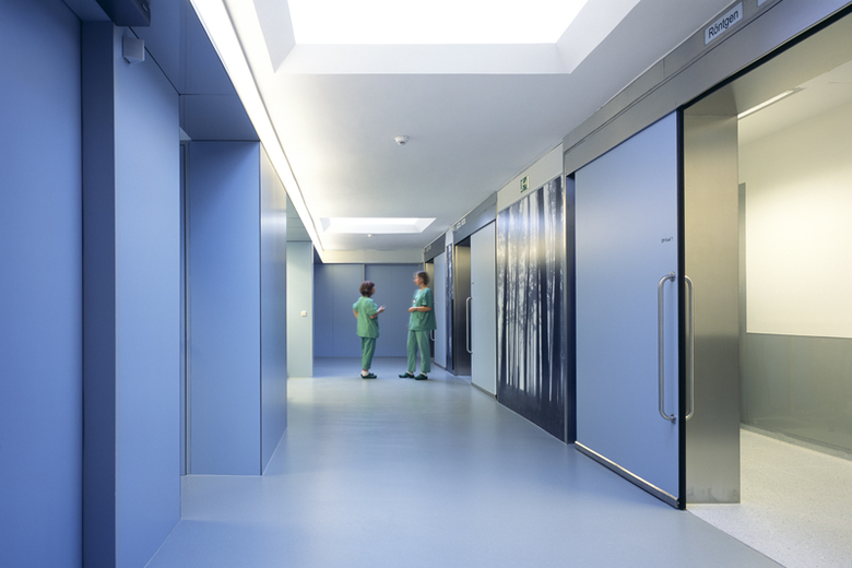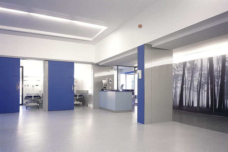 On the campus of the Evangelisches Waldkrankenhaus in Berlin Spandau, a simple existing building from the 1970s was converted into a modern surgical center. This is intended to take account of changes in the health system and relieve the inpatient operating area. The design is designed to ensure the hospital's future viability even under changing medical conditions. The outpatient operating centre has two fully equipped operating theatres and an operating theatre, which can be retrofitted as an additional 3rd surgery room if required. Targeted ceiling openings create generous two-storey room volumes in the entrance hall and in the preparation room.