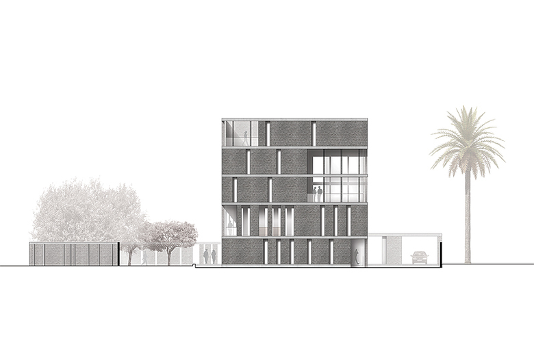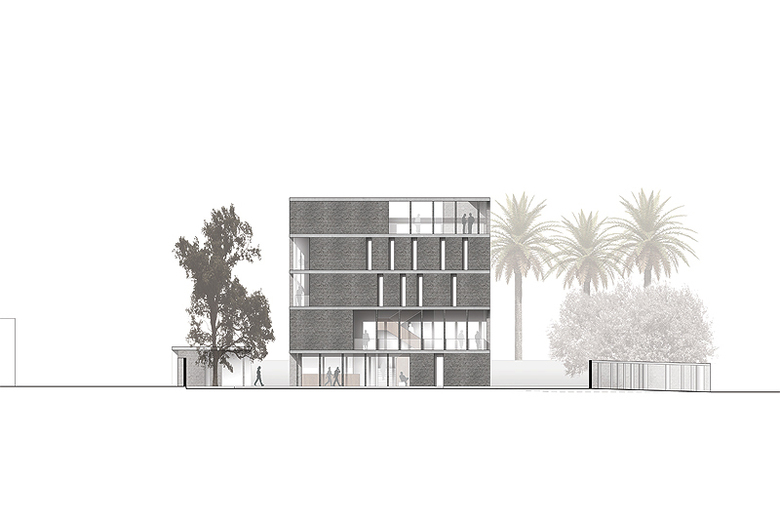 The new German embassy in Nicosia presents itself as a compact, 5-storey cube stacked from squared sandstone blocks typical for Cyprus. Generous internal facade openings are covered by regularly two-storey loggias, which form an appropriate transition from the inside towards the outside and at the same time provide a natural buffer against the heat load. The garden facilities are divided into various intensively usable areas: In the west the form al entrance square, in the north and the east the parking lots under the shady roof of tree tops and in the south the green tip of the property, which pushes far into the roadside and - as " the Green Bug" – will help to coin the image of Germany on Cyprus.