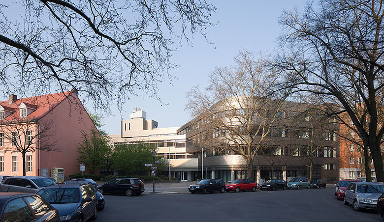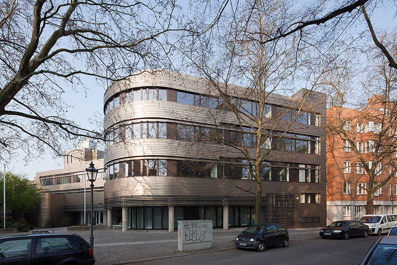 The Oberstufenzentrum KFZ Technik Berlin, the former Porsche secondary school for automotive technology built by H. Stranz in 1972 - 1976, borders Gierkeplatz in Berlin Charlottenburg to the southwest. Typically for the 70s, the urban planning settlements that had grown over time were ignored or reinterpreted. The square edge of Gierkeplatz was taken, but at the transition from the square to Gierkezeile the building jumps back with a great swing from the edge of the street into the interior of the block, where the main building was concentrated in the former school garden of the first Charlottenburg school building.