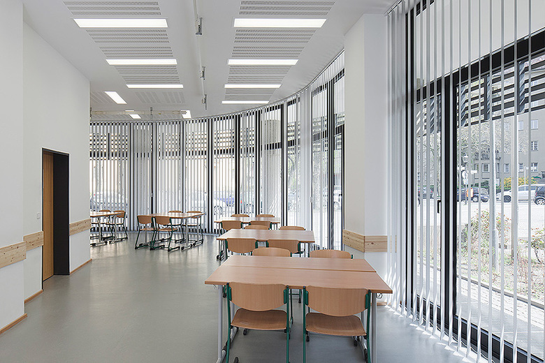The energetic facade renovation of the Oberstufenzentrum für KFZ Technik Berlin between 2008 and 2011 aimed to find a contemporary interpretation and further development for the typical metal facade of the building from the 1970s, without abandoning the reference to the original facade, so to speak in anticipation of a future evaluation appropriate for historical monuments. The creation of two new training workshops on the ground floor towards Gierkeplatz significantly improves the school's external appearance and urban planning orientation.