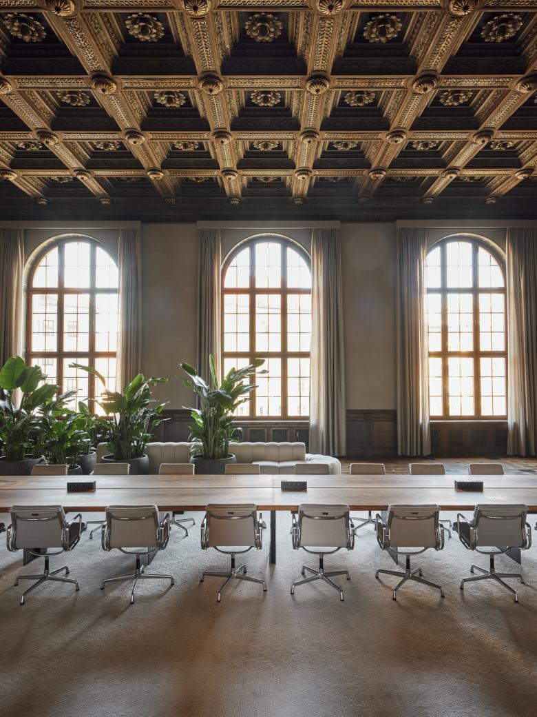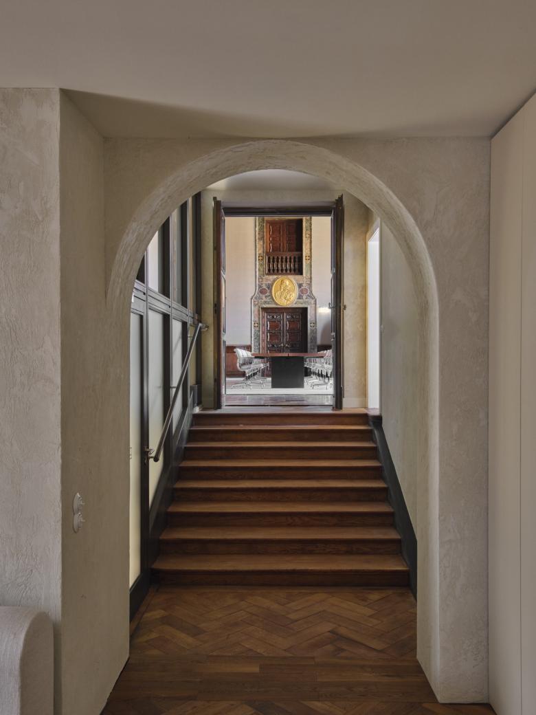 Im Mittelpunkt stand die Transformation und Wiederaufbereitung des denkmalgeschützten Gobelinsaals in einen multifunktionalen Arbeits- und Veranstaltungsraum. Ergänzt wurde dieser durch eine offene Küche, repräsentative Archiv- und Bibliotheksräume sowie ein zusätzliches Ausstellungsdepot – den „Tresor“. Historische Details, Lichtführung und Möblierung wurden sorgfältig aufeinander abgestimmt. So entstand ein Ort, der gleichermaßen Kreativität, Kommunikation und Repräsentation unterstützt.