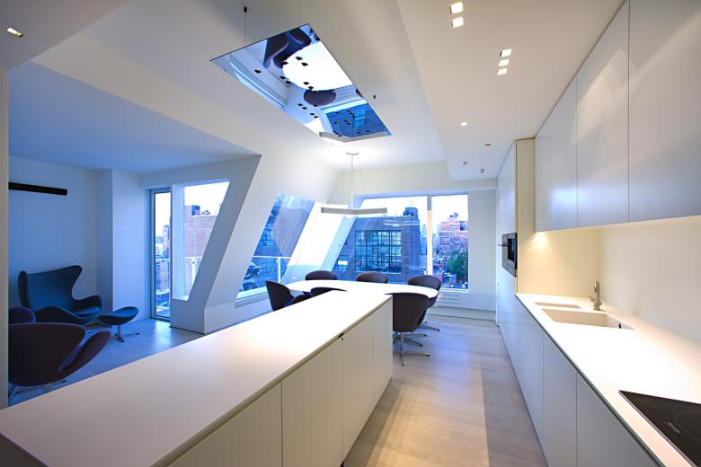 Located in New York City and nestled between the trendy Meatpacking District and Highline Park, this rooftop penthouse apartment was renovated to address INNOCAD’s client’s needs. The architecture team changed the design’s functionality and enhanced the space by mixing European design with a New York vibe thus creating a fresh atmosphere that is simple, clean and modern but also interesting, luxurious and urban.