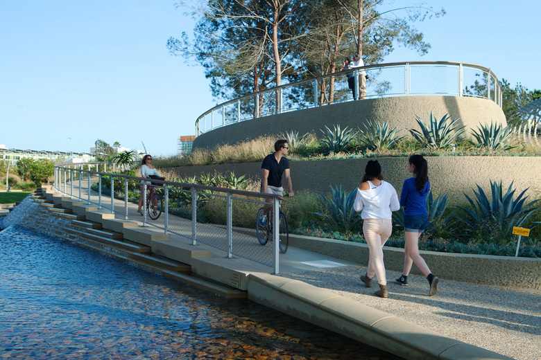 For the City of Santa Monica, Field Operations has transformed a former parking lot into a dynamic topography and lush landscape of rolling hills, meadows and gardens now celebrated as an important destination and center for the community. The design was shaped by an extensive community process and is inspired by the Southern California arroyo landscape, where topographic washes and ravines once defined the site. The park is enormously successful and popular with both residents and visitors to Santa Monica, and has received numerous national design awards.