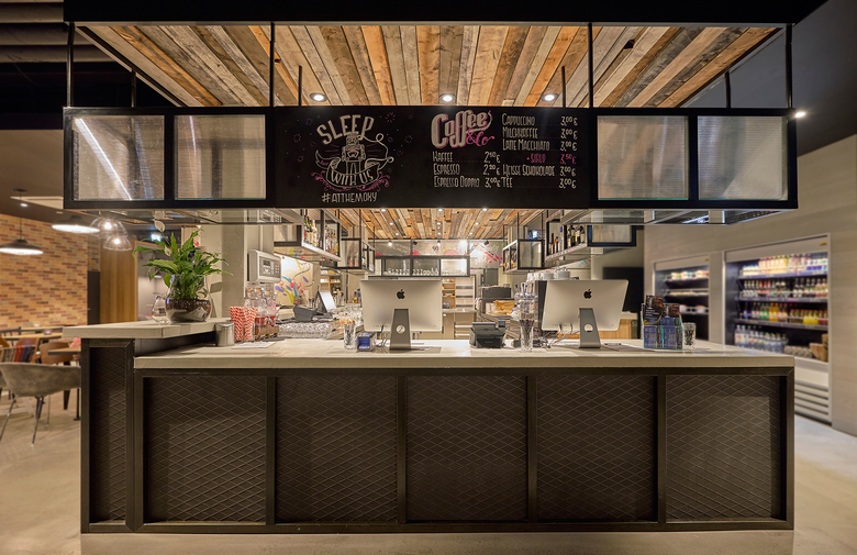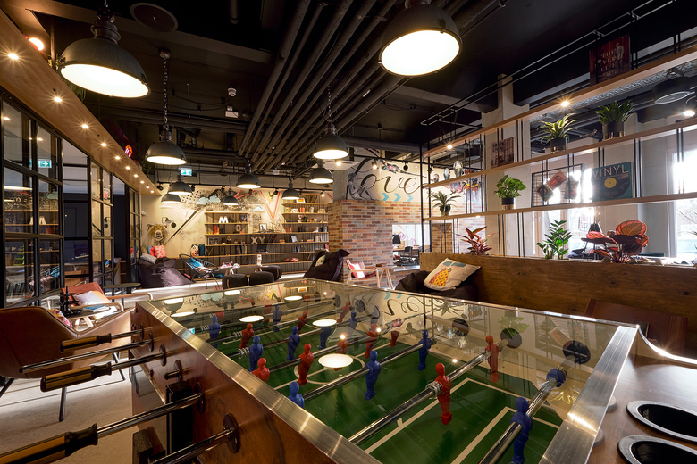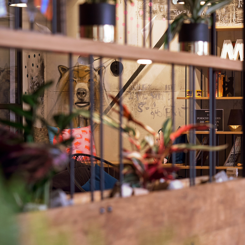 The Moxy Berlin is authentic and cosy whilst at the same time industrial and hip. From the moment you enter the lobby the guest tour of discovery begins, themed around Berlin’s heraldic animal – the `Berlin Bär´ (bear) which is strongly integrated in the entire concept. Exposed concrete surfaces reveal the history of the building, and accessories such as books which give an insight into Berlin’s history and offer sightseeing tips. Different zones are equipped with a mix of lounge and other seating furniture, alongside street art on the walls and several trendy accessories. This forms the perfect basis for a great working atmosphere, casual business meeting or a game of chess with a buddy after a busy working day.