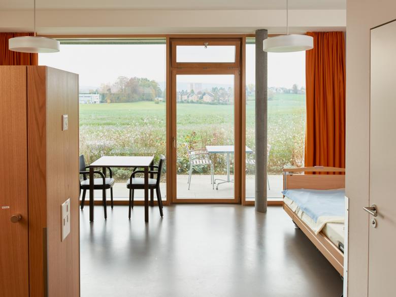 Die Aufgabenstellung besteht aus zwei Teilen. in einer ersten Etappe wird das ehemalige Personalhaus im Erdgeschoss mit einem eingeschossigen Neubau erweitert, welcher eine zusätzliche Pflegeabteilung beherbergt. Die Obergeschosse werden zu Verwaltungs- und Sitzungsräumen umgebaut. Die zweite Etappe umfasst den kompletten Umbau und die Neuorganisation des Restaurants, den Einbau von Personalräumen in den bestehenden Innenhof sowie der Umbau der Lingerie.