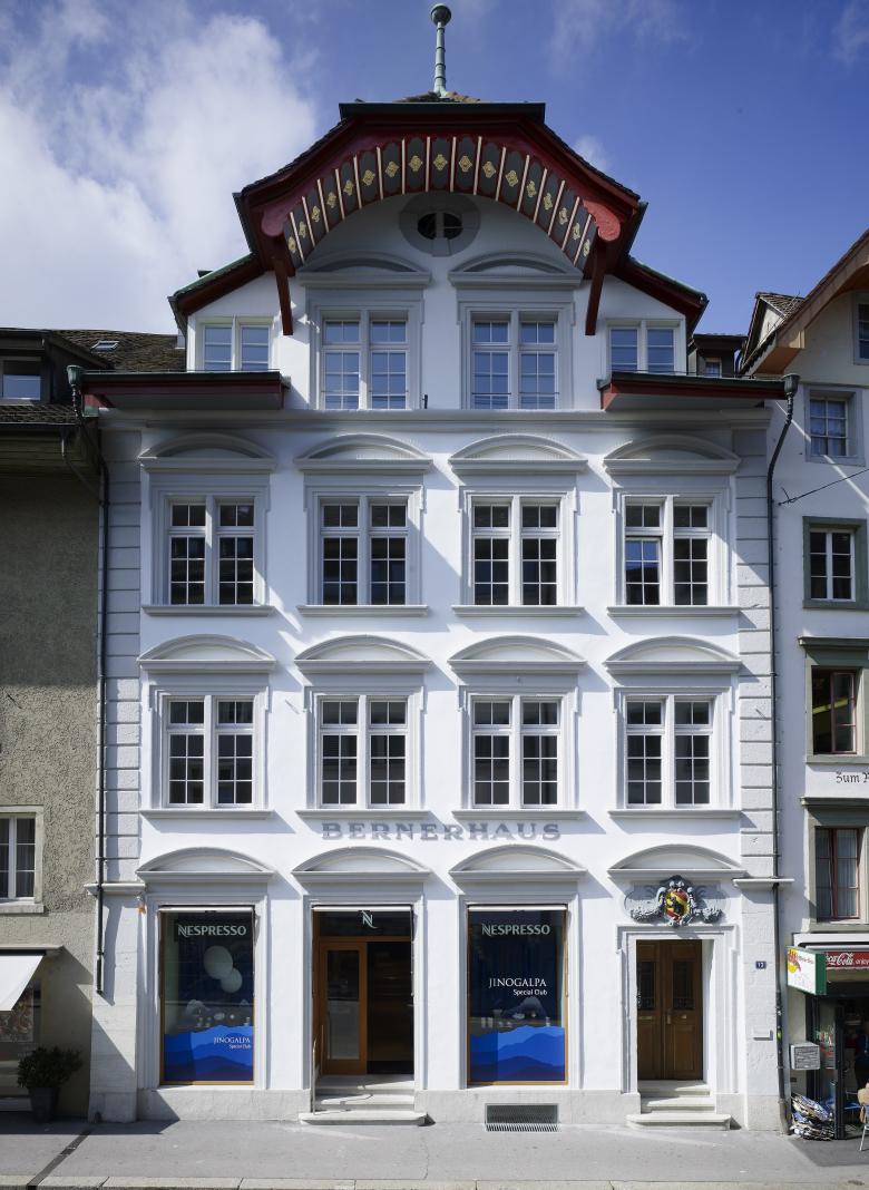 Die denkmalgeschützte Liegenschaft „Bernerhaus“, bestehend aus einem dreigeschossigem Haupthaus „Weite Gasse“ und einem Hinterhaus „Mittlere Gasse“ mit zweigeschossigem Verbindungsbau im Hof, wurde Gesamtsaniert. Dabei wurde die bestehende, historische Bausubstanz der Aussenhüllen, Tragstrukturen, sowie der massiven Treppenhausanlagen, integral erhalten. Die ursprünglichen, einfachen Raumstrukturen der Obergeschosse von Haupt- und Hinterhaus, sollen wieder als Raumorganisation regieren. Später erfolgte, verunklärende Einbauten wurden rückgebaut. Die neuen Einbauten sind in einer neuzeitlichen Formensprache und Materialisierung eingefügt, um so den Dialog von “Alt und Neu“ zu thematisieren.