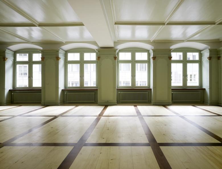 Die Sanierung und Restaurierung des klassizistischen Saals im 1. Obergeschoss des Vorderhauses und den Zimmern im 1. und 2. Obergeschoss des Hinterhauses wurde teilweise wieder in ihren ursprünglichen Zustand zurückgebaut. Dabei wurde Rücksicht auf die damalige Substanz genommen, die durch Spezialisten restauriert wurde. Diese baulichen Eingriffe wurden in enger Zusammenarbeit mit der Kantonalen Denkmalpflege entwickelt und vor Ort umgesetzt.