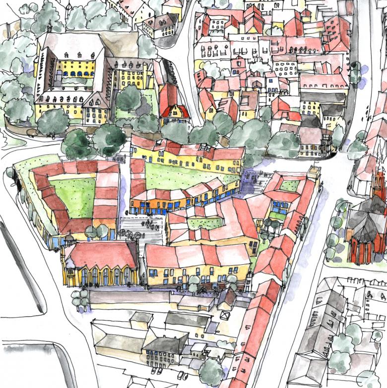 An der Schnittstelle der lebendigen Altstadt und dem Entwicklungsgebiet nördliche Innenstadt wird mit dem Stadtquartier ein neuer Akzent gesetzt. Das Quartier verbindet die südliche Altstadt mit der Stadterweiterung des 19. Jahrhunderts. Die räumliche Gliederung der Baukörper und das Spiel von Enge und Weite korrespondiert mit der bestehenden Altstadt-Typologie und wird im neuen Stadtquartier fortgesetzt.