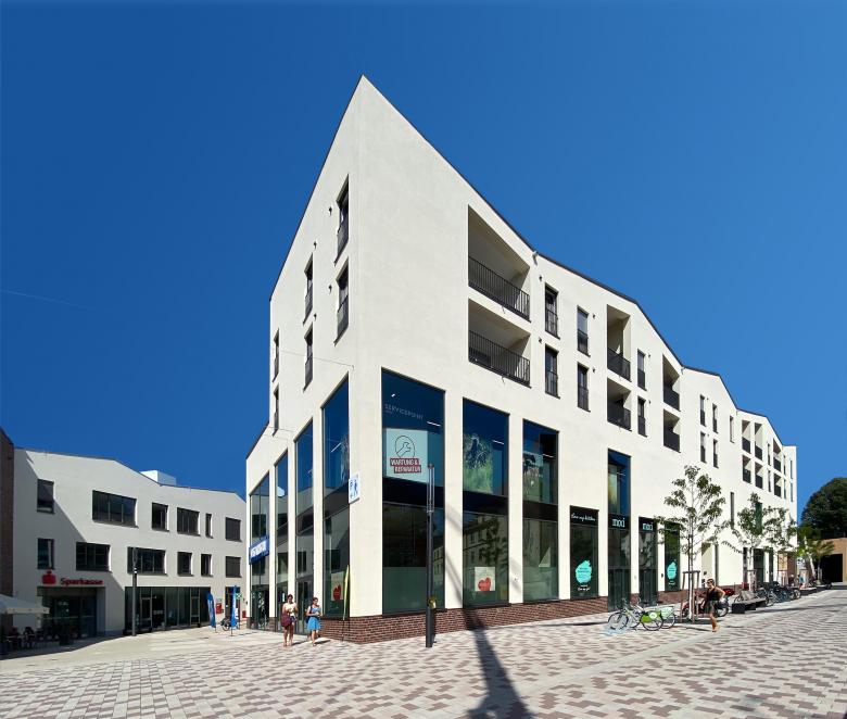 Insgesamt sind auf dem rund 12.700 m² großen Areal ca.12.000 Quadratmeter Verkaufsfläche für den Einzelhandel, sowie weitere 700 m² Gastronomie und Dienstleistungen entstanden.