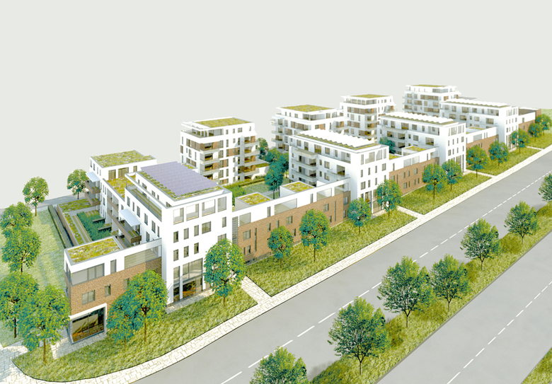Neubau von 120 Miet- und Eigentumswohnungen und Büros, Altengerechtes Wohnen