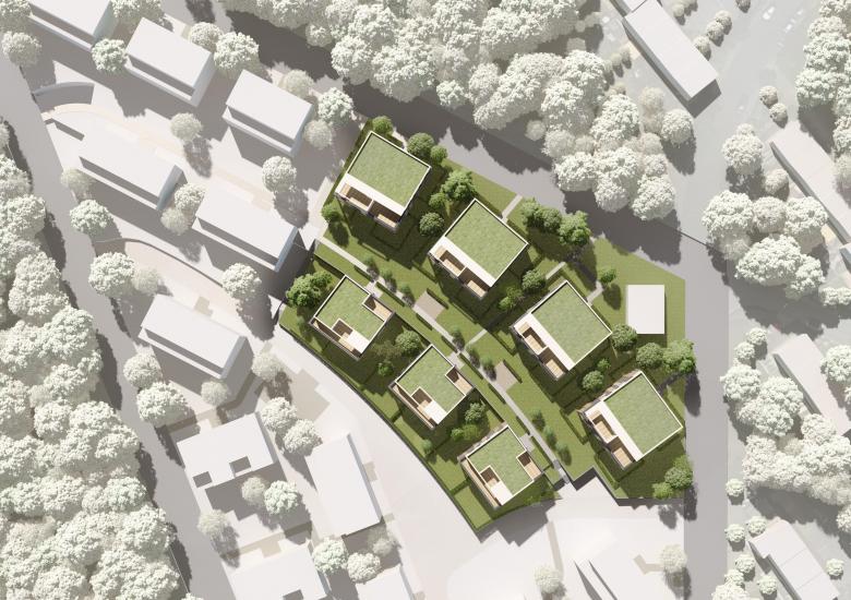 „Unser städtebaulicher Entwurf auf dem Gelände des Waldviertels basiert auf sieben dreigeschossigen Solitären, jeweils mit Staffelgeschoss.