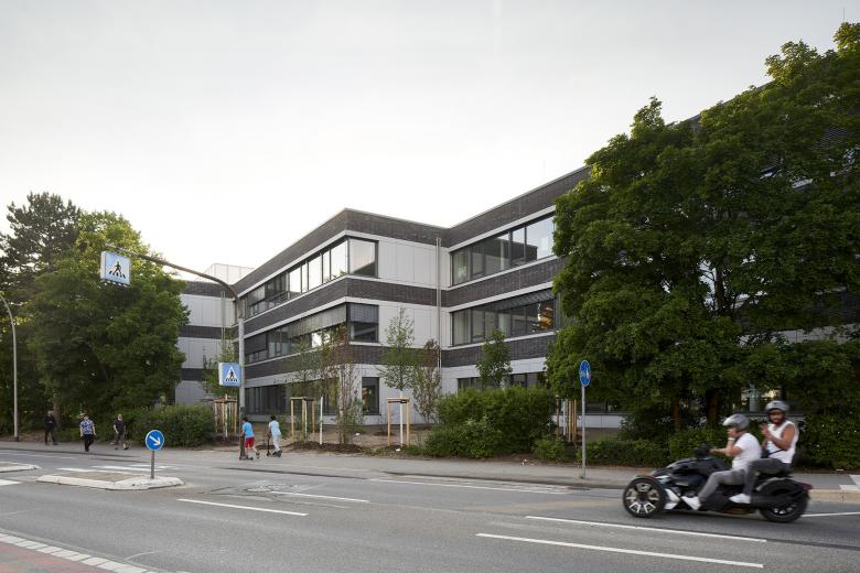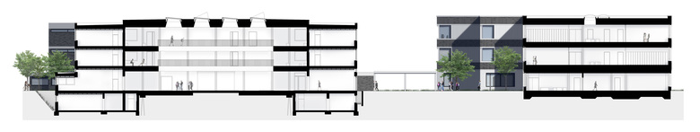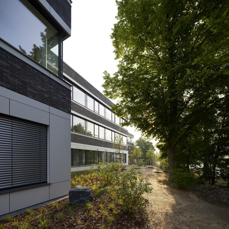Lack of space will not exist in the future. The school gets a new building for the classes 5 to 7, for the administration, the staff room and the cafeteria. The building is optically divided into three equal parts and arranged offset along the Hessenring. Thereby the course of the road is optimally recorded and a parallel is drawn to the main building. The special feature: Inside the building, there is a continuous access corridor, which ensures easy orientation in the staggered building.