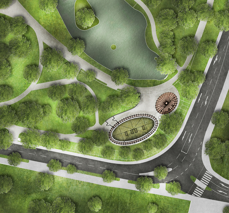The ensemble’s formal shape interacts strongly with its particular use as well as with its urban context. The exposed site, which is situated in the southern portion of the “Schlossgarten” and in the immediate vicinity of the pond, allows the two volumes of the buildings in combination with the fence to be conveyed easily. Also multiple views from all directions are offered to people walking by and in especially to the little visitors to the petting zoo.
