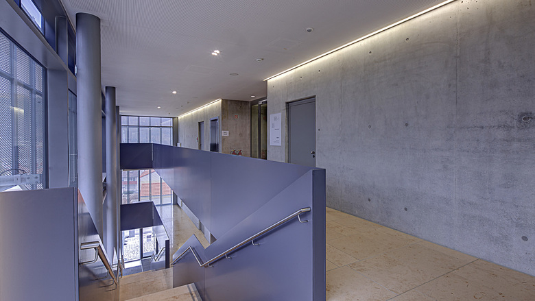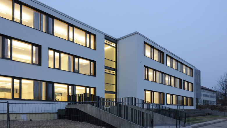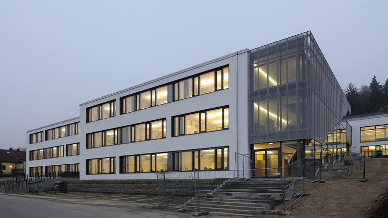1. BA: Der Erweiterungsbau der Berufsschule Eichstätt ist für 30 Klassen- und Fachklassen, Verwaltungsräume sowie Werkstätten der Elektrotechnik konzipiert. Ergänzt wird die Maßnahme mit einem zentralen Mensagebäude.