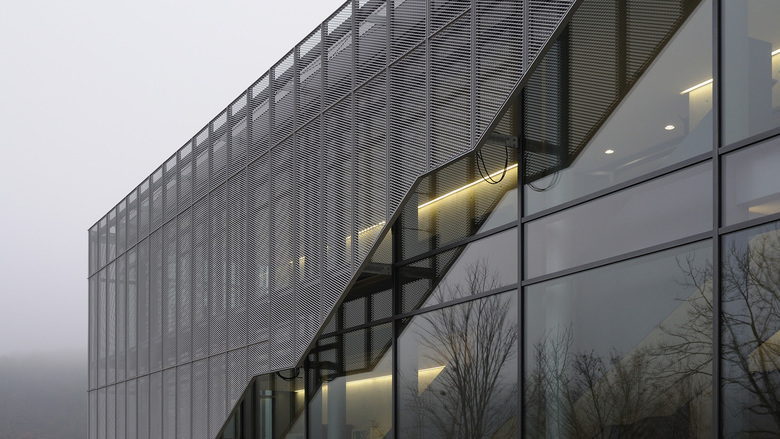 Die Kleinteiligkeit der bestehenden Berufsschule reagiert auf die differenzierte Umgebungsbebauung. Ähnlich nehmen auch die Erweiterungsbauten als einzelne „Cluster“ die Körnung der angrenzenden Gebäude auf, Höhen- wie auch Maßstabssprünge werden vermieden.