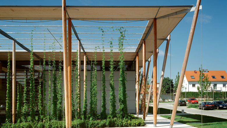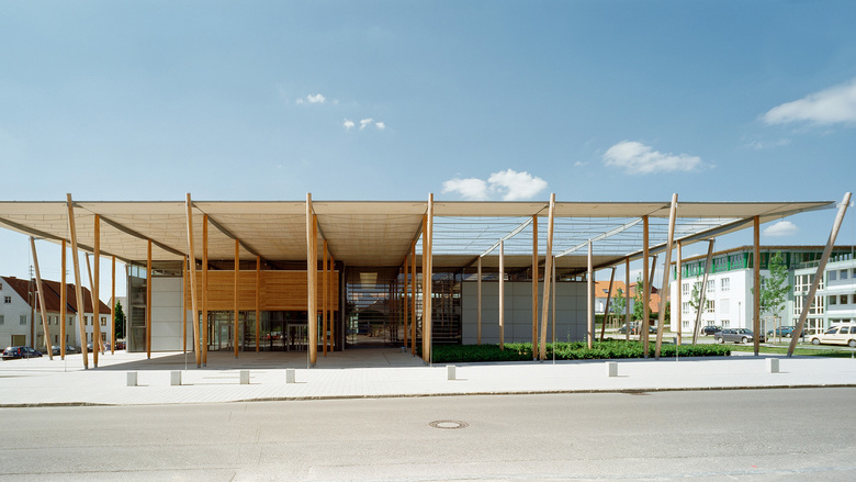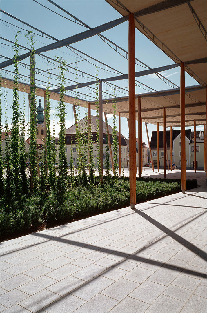 Im Zentrum des Hopfenanbaus in der Holledau ist das erste deutsche Hopfenmuseum entstanden. Die Planung erfolgte auf der Grundlage eines Architektenwettbewerbs im Jahr 2000. Inmitten des Marktes Wolnzach steht der filigrane Holzbau, dessen gestalterisches Konzept die Charakteristika der klassischen Hopfengärten aufnimmt: schlanke, abgespannte Holzstützen sind mit einer dünnen Stahlkonstruktion verbunden und tragen ein leichtes, schwebendes Dach aus Holz-Dreischichtplatten. Zug und Druck werden nach außen, wie bei den Hopfengärten, über die äußeren schräg gestellten und mit dem Fundament verspannten Stützen abgeleitet. Der Besucher wird von einem großzügigen überdachten Vorplatz empfangen und auf das Thema des Museums eingestimmt. Ein großes „Schaufenster“ wie auch Oberlichtbänder lassen das Gebäude offen und einladend erscheinen. Der Innenraum ist eine helle, freundliche zweigeschossige Halle. Die Geschossebenen sind durch großzügige Lufträume miteinander verbunden. Natürliche Materialien wie Holz, Glas und Gussasphalt unterstützen die Wirkung der Exponate. Auch die Zwischendecke ist eine Brettschicht-Holzkonstruktion. Der Bauherr hat in jahrelanger Arbeit eine beachtliche Sammlung an Exponaten zusammengestellt, die man sich seit dem Frühjahr 2005 im Museum anschauen kann.