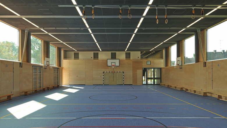 In der nördlichen Verlängerung des Altbaus wird eine Einfachsporthalle mit angrenzenden Sportflächen platziert, die auch von Vereinen genutzt werden kann.
