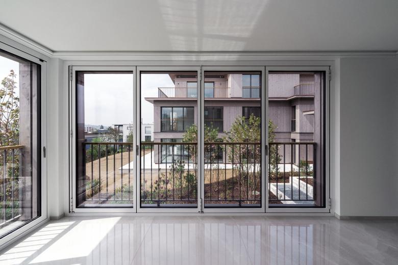 Die Typisierung reicht von mittelgrossen Gartenwohnungen, über kleinere Geschosswohnungen mit integrierten Vier-Jahreszeiten-Zimmer bis zu grosszügigen Attika-Wohnungen mit grossen Dachterrassen.
