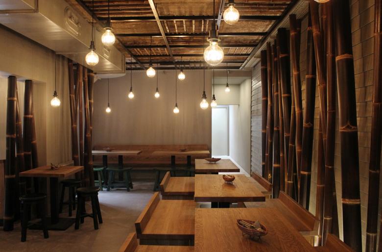 The Duma restaurant offers an exciting interplay of architecture and nature. Via an inner bamboo forest with floor-to-ceiling bamboo sticks growing out of the ground with clearings and points of light, the guest arrives in a greened and covered inner courtyard. The transition between the interior and exterior is fluid. Large patio doors allow a clear view of the beautiful garden and bring even more nature into the interior. Natural elements such as solid oak, fine bamboo wood and tropical plants create a pleasant and friendly atmosphere.