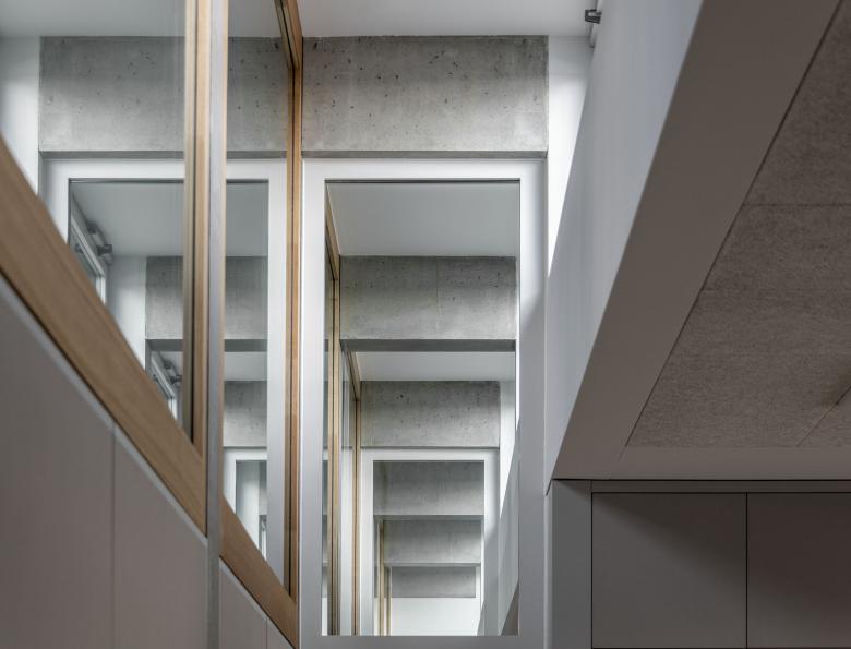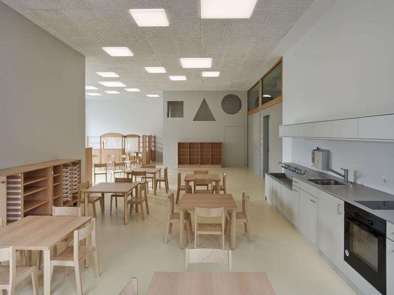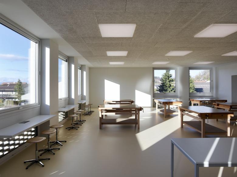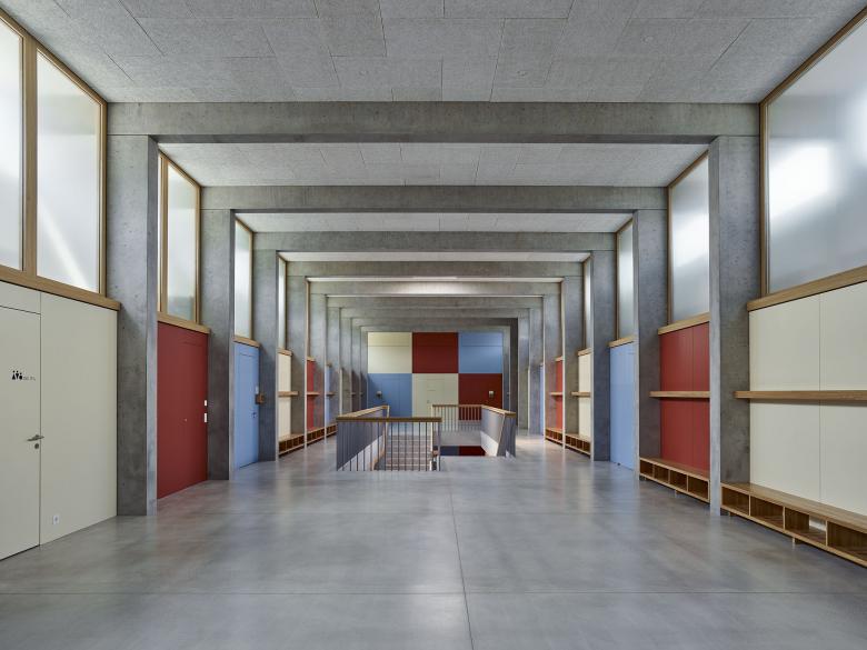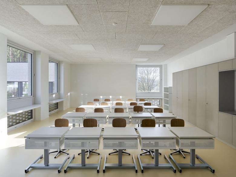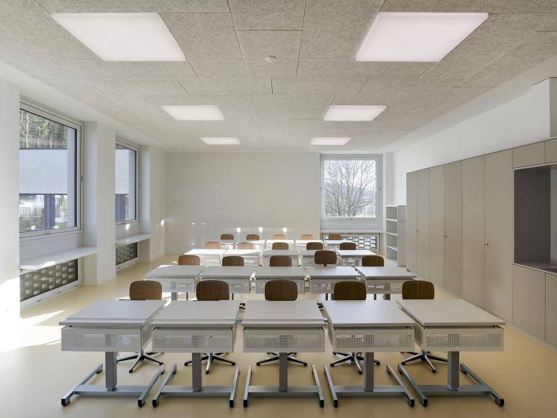 All classrooms including the central main hall are optimally supplied with daylight thanks to a sophisticated daylight design. The supplementary artificial lighting integrates cautiously and particially invisibly into the architectural context.