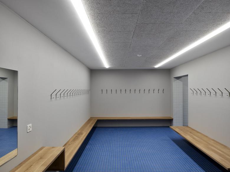The lighting design in the gym is all about functional and vertical lighting. Thanks to the focus of the vertical lighting, exciting perspectives and spatial relationships as well as an interplay of light, color and reflection arise.