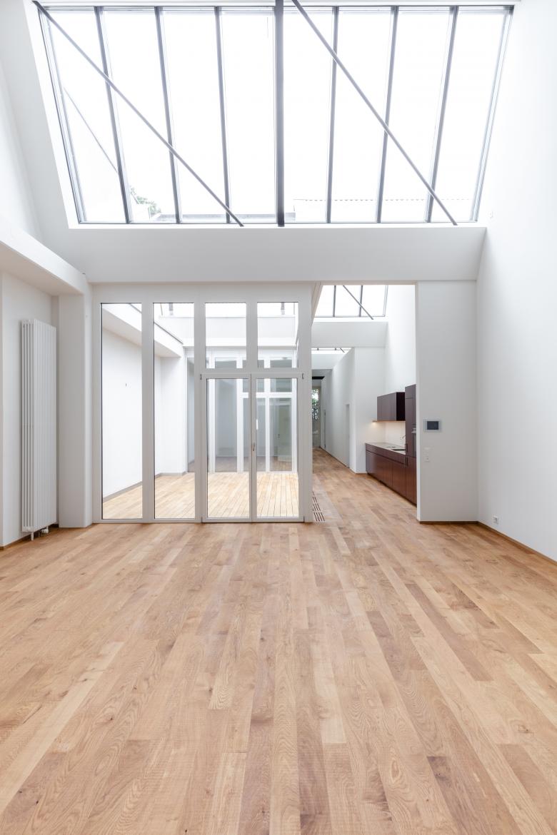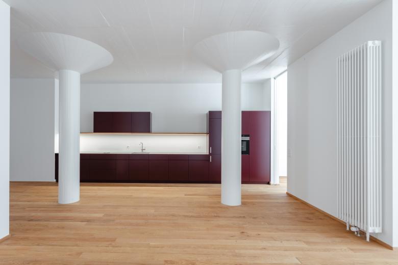 Ein bestehendes Druckereigebäude in der Innenstadt - bestehend aus Fabrikationshalle und Bürotrakt - wird in Wohnnutzung übergeführt. Der durch die industrielle Nutzung bestimmte Charakter des Bestands wird zu einem tragenden Entwurfsthema und wird auch in der neuen Nutzung weiter spürbar sein. Die Direktheit der Tragkonstruktion, Pilzkopfstützen, Rippendecken und Besonderheiten wie die Stahlkonstruktion des Sheddachs werden mit wenigen neuen Elementen und Materialien ergänzt und so neun Loftwohnungen in die Bestandvolumetrie eingeschrieben.