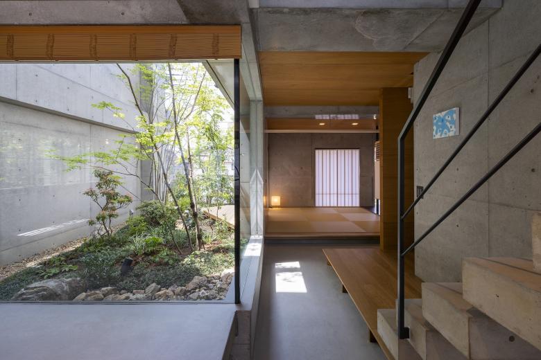 Internally, the space is defined by the expansive pine grove along the Shukugawa riverbank to the east, the Hankyu Railway tracks to the west, and two north-south courtyards on the western side. These courtyards act as privacy buffers, creating ambiguous transitional spaces between interior and exterior.