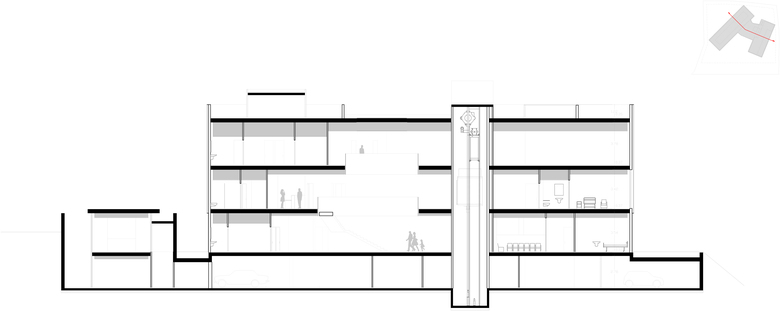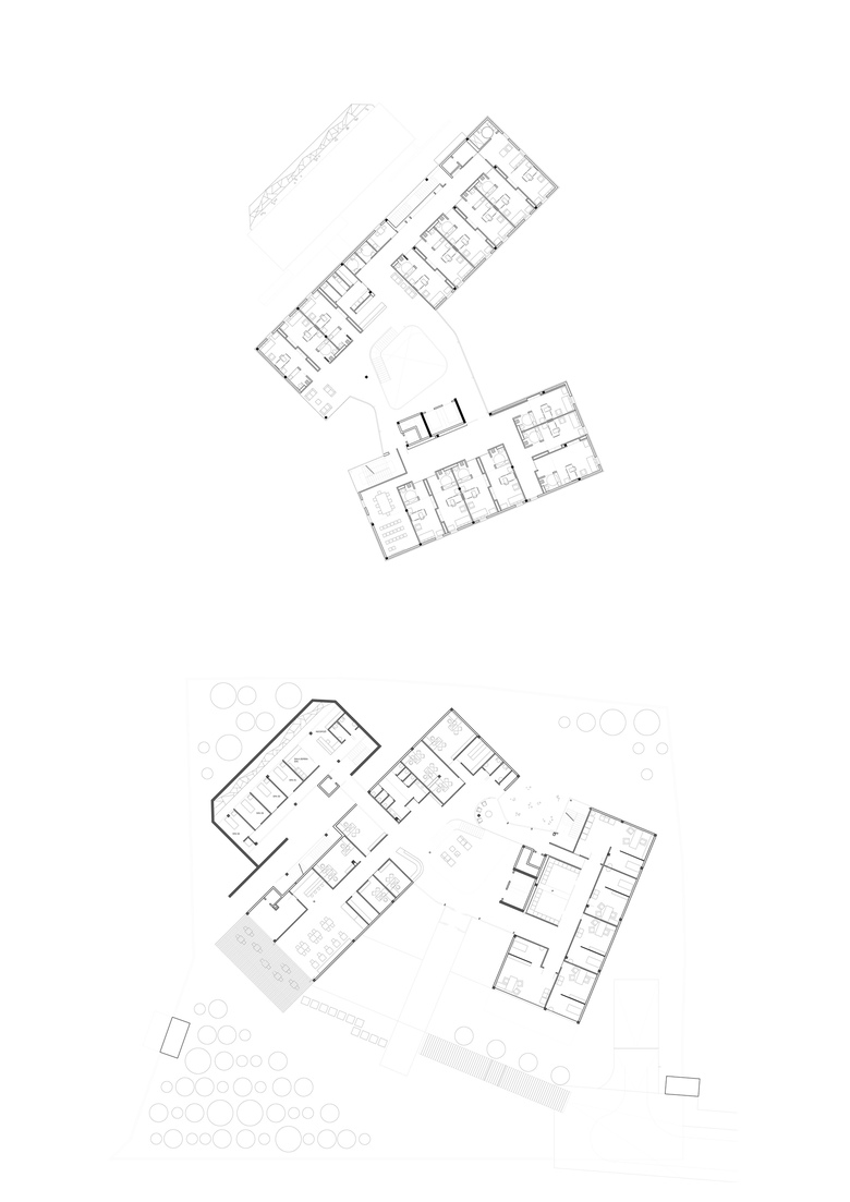 The brief for this annex to the area of Traumatology was based on the creation of a new department for patients with burn injuries. The gymnasium that had been standing on the rather constricted site had been demolished and all that remained of it was the basement in which the department’s archives were stored. The program stipulated that both this space as well as its function as an archive had to be maintained.