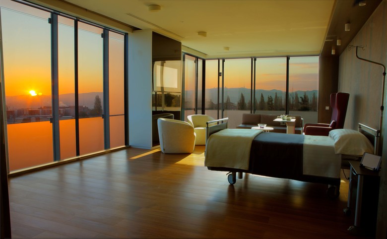 The 2,500 m2 of surface area is divided on two levels that maintain continuity with the levels of the existing building. All the rooms for patients with burn injuries; treatment areas and the plastic surgery operating room are located on the semi-basement floor. To this unit, which is totally prepared for emergencies, a rehabilitation room and administration offices have been added. On the ground floor above there are nine surgical rooms with their corresponding post-operation recovery room.