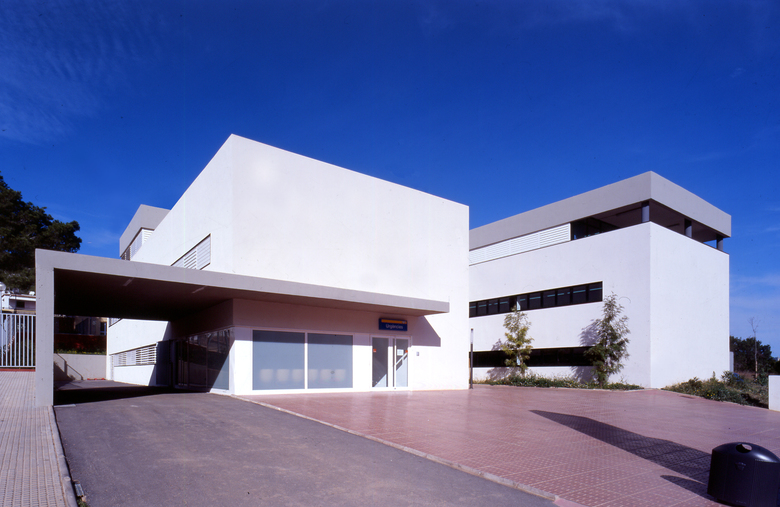 Located in a residential area undergoing development on the outskirts of the town, the design proposal was based on reducing the visual impact of the building within the context of the two-story houses surrounding it while at the same time establish the identity of the center as a public building. Consisting of a central volume with two lateral volumes, which are articulated by the geometry of the site, a double criteria was used to organize the functional organization: on the one hand, similar functions are grouped together in each of the three blocks and on the other hand, the different departments are distributed on specific levels according to their use. The differentiated entrances define the public character of the center with pedestrian access via a plaza leading to the double-height entry hall and the ambulances’ entrance is through a covered area on the other side. In response to the luminous quality typical of the architecture of Ibiza, the principal materials utilized are white stucco and glass.